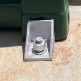 The twistlock is mounted and then fixed to the concrete surface with bolts, creating a strong and fixed connection.