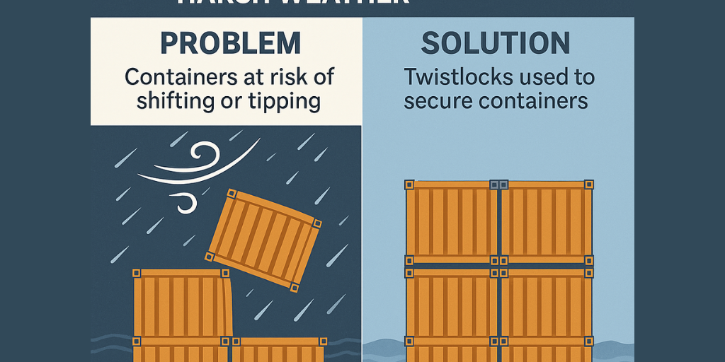 Even on land, strong winds or uneven ground can pose a risk. Twistlocks add an extra layer of safety when containers are placed in one spot for a longer time.