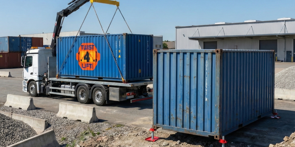 Traditionelle containerløft kræver tungt udstyr, forskellige kroge til top og bund, og ofte mere tid end selve flytningen. Twist4Lift® ændrer hele processen.