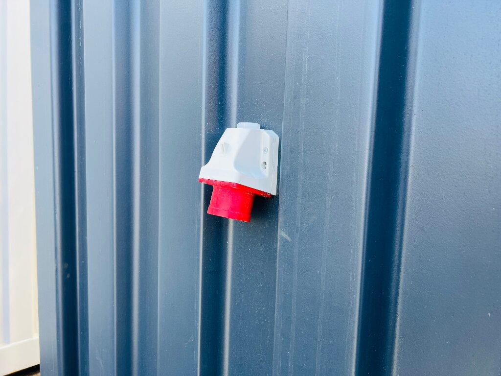 Vores standardløsning består af en dobbelt stænktæt stikkontakt monteret i siden eller enden af containeren, et udvendigt 220V CEE kraftstik samt en indvendig gruppetavle.