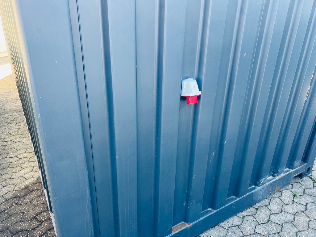 • Standardløsningen er en dobbelt stænktæt stikkontakt i siden eller enden af containeren og med et 220v CEE kraftstik udvendig, samt med gruppetavle indvendig